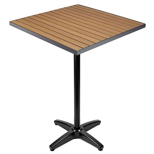 Great option for outdoor dining for restaurants. The TA-PT 32"x32" Faux Teak Commercial Outdoor Bar Height Table Top and Bases are made with synthetic faux teak and aluminum top with aluminum bases. They are low maintenance and durable enough for restaurant use.