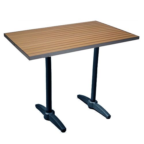 Great option for outdoor dining for restaurants. The TA-PT 32"x48" Faux Teak Commercial Outdoor Bar Height Table Top and Bases are made with synthetic faux teak and aluminum top with aluminum bases. They are low maintenance and durable enough for restaurant use.