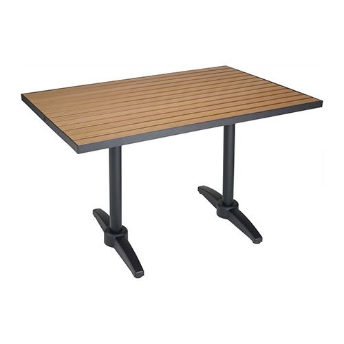Great option for outdoor dining for restaurants. The TA-PT 32"x48" Faux Teak Commercial Outdoor Dining Table Top and Bases are made with synthetic faux teak and aluminum top with aluminum bases. They are low maintenance and durable enough for restaurant use.