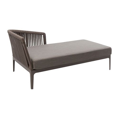 A modern and stylish option for commercial pool areas. The Vero Beach Aluminum Commercial Outdoor Chaise With Left Arm, Straps and Cushion has an aluminum frame, with strap and cushions for long-lasting durability outdoors.